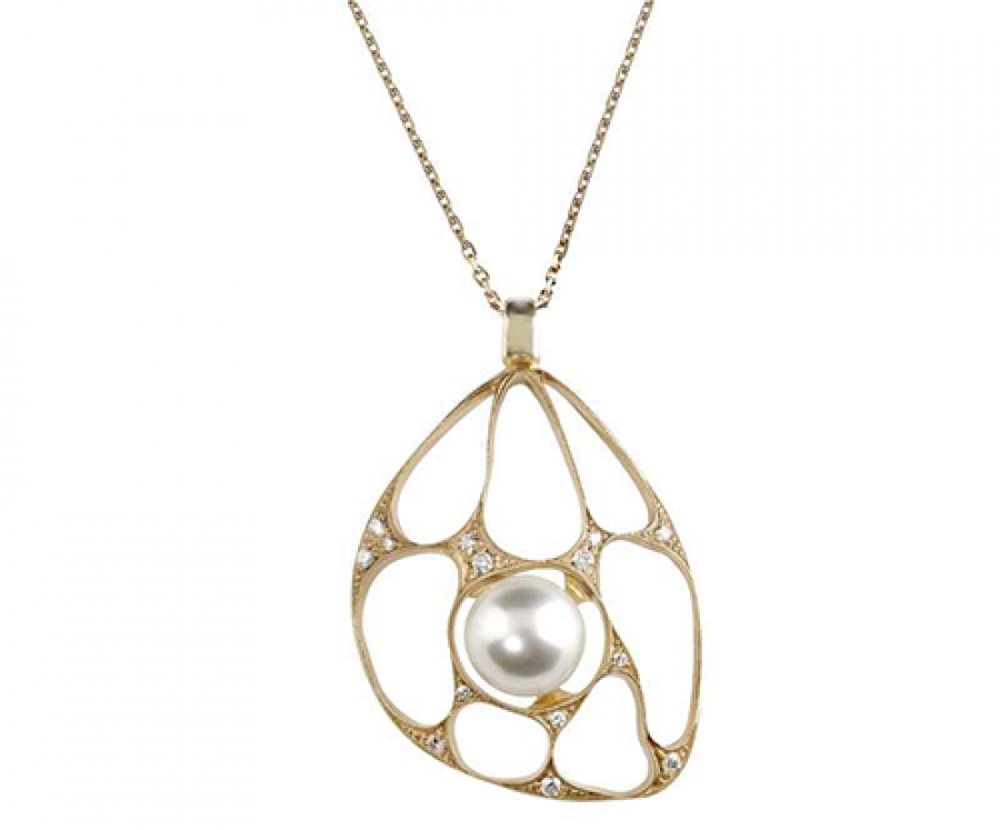 Gyémánt medál rózsaszín aranyból, gyönggyel díszítve