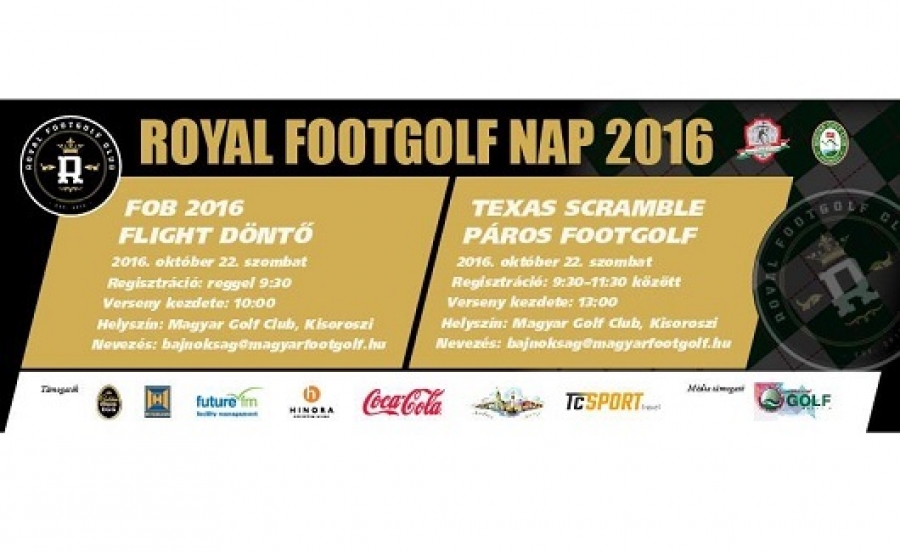 Október 22-én rendezik a Royal Footgolf Napot Kisorosziban, a Magyar Golf Club Puskás pályáján. A délelőtti programban bonyolítják a 2016-os Footgolf Országos Bajnokság során kialakult flightgyőztesek egyenes kieséses versenyét, délután pedig a szintén izgalmasnak ígérkező Első Országos Texas Scramble Footgolf Kupát.