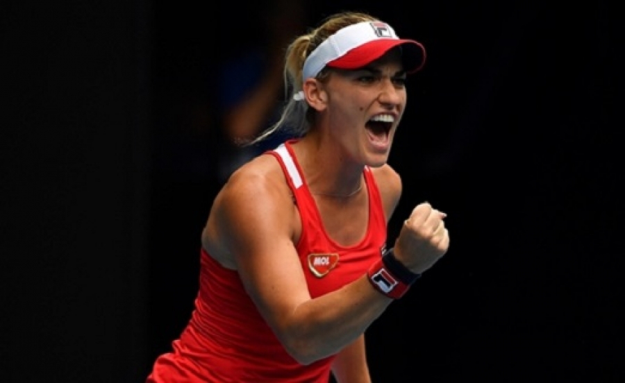 A világranglistán 110. magyar játékos a szlovén Dalila Jakupoviccsal (82.) találkozott az első fordulóban, és szetthátrányból fordítva, 2 óra 31 perces csatában diadalmaskodott.
